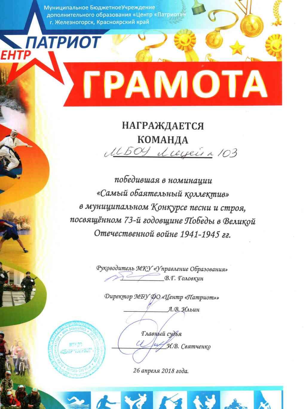 посвященном 73-й годовщине Победы в Великой Отечественной войне 1941-1945 гг.